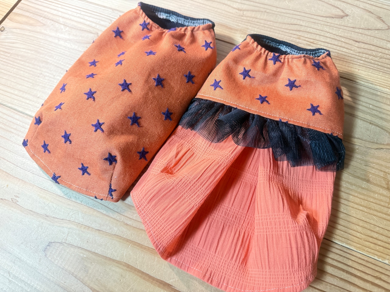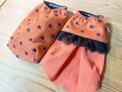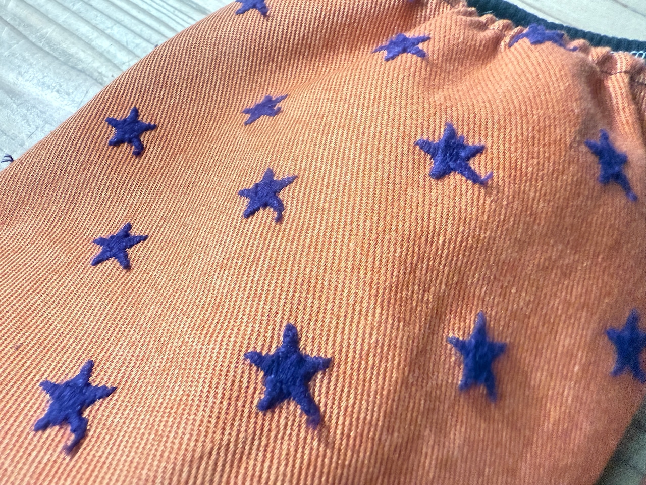 星柄は立体刺繍になっているデニム風のしっかりとしたコットン生地です。(スカート部分は薄手の綿素材)