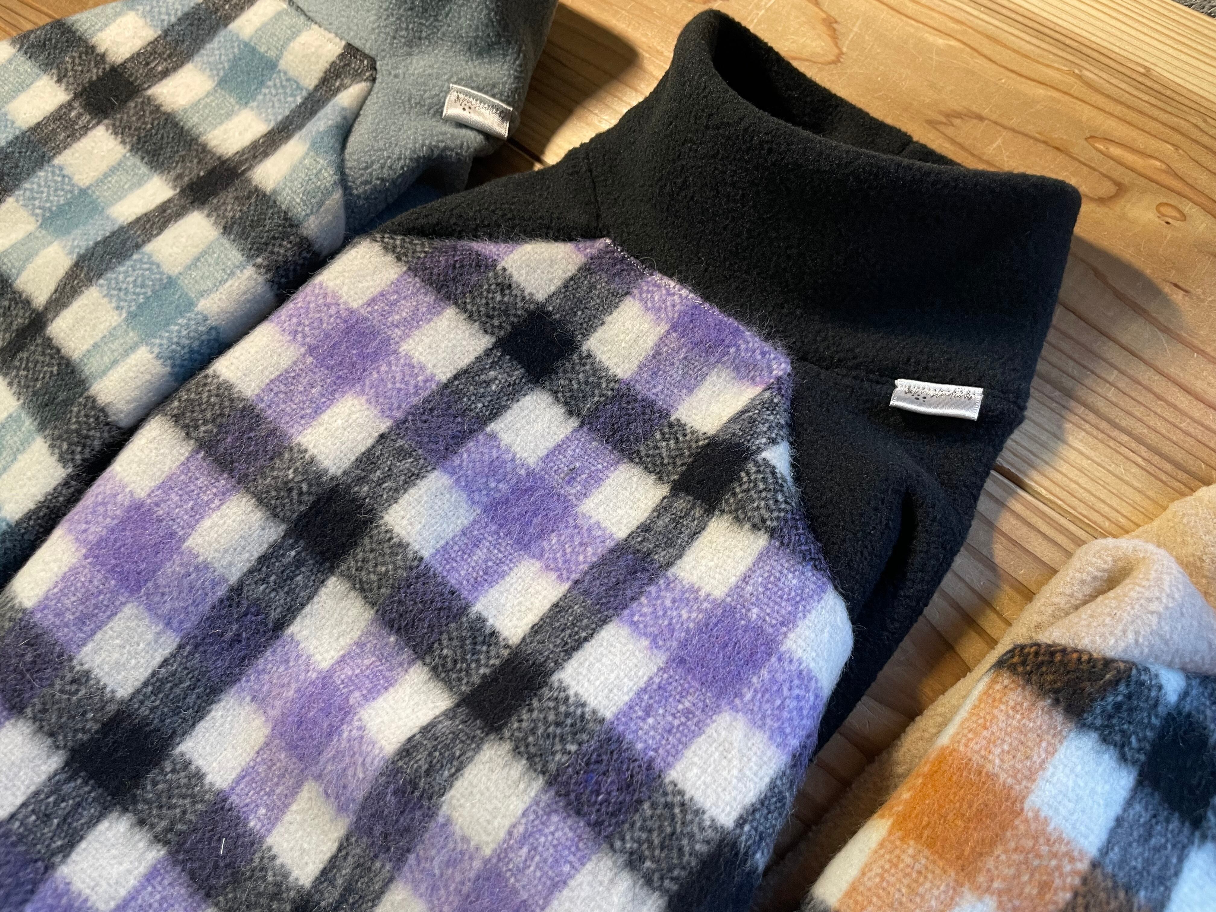 背中は、ウール、ポリエステル、アクリル、ナイロンで、暖かでシックなチェック柄