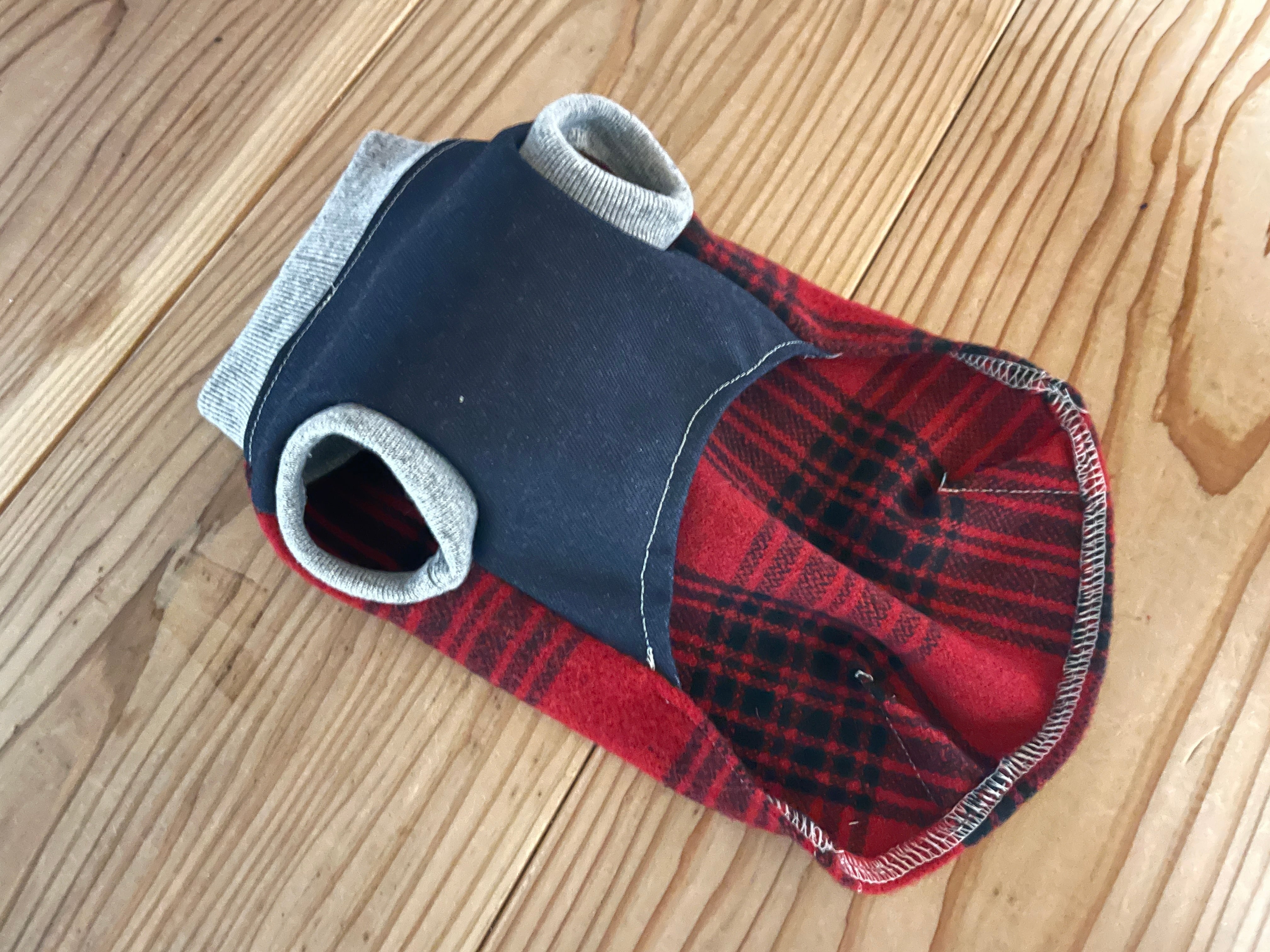 チェック柄のアクリルウールと、ストレッチデニムのタンクトップです。